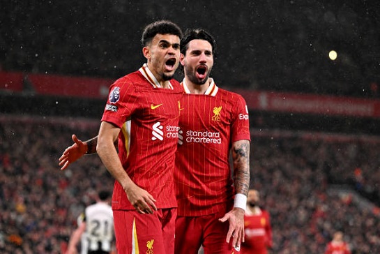 «Ливерпуль» показал сегодня, как собирается обыгрывать «Ньюкасл» в финале Кубка Лиги, который состоится 16-го марта на легендарном «Уэмбли». Уже на 11-й минуте со стороны левого края чужой штрафной здорово Диас сыграл, отправив мяч между двумя оборонцами «Ньюкасла». Собослаи выстрелил низом, голкипер не выручил – 1:0. В дальнейшем «красные» постоянно владели мячом, а приезжие упускали изредка возникавшие опасные моменты у ворот Алиссона, особенно в этом преуспел Уилсон. Второй мяч хозяева поля забили уже во второй половине дуэли. На 63-й минуте Макаллистер пробежался к чужой штрафной, здорово сыграл с Салахом, после чего получил обратную передачу от Мохамеда, а затем с пятнадцати метров под левую «девятку» отправил игровой «снаряд». Без Исака у «сорок» прямо беда в нападении, ничего толкового не получается. Мерсисайдцы же показали, что вполне спокойно могут обыгрывать «Ньюкасл». Вот здесь главное фавориту только не расслабиться и не подумать, мол, тут разобрались, да и в Кубке Лиги все ок будет. Недооценивать данного оппонента никак нельзя, но думается, об этом в «Ливерпуле» и так знают. ![]() Фото - Getty Images Предыстория. Генеральная репетиция финала Кубка Лиги, так сказать. Уже 16-го марта на «Уэмбли» за вышеназванный трофей сразятся «Ливерпуль» и «Ньюкасл». А нынче, в рамках 27-го тура АПЛ, этим же соперникам предстояло схлестнуться на поле стадиона «Энфилд». «Красные» идут очень уверенно в национальном первенстве, мало кто сомневается уже, что они станут чемпионами Англии. «Сороки» же бьются за попадание в еврокубки, пока они держатся в зоне ЛЕ. Фаворит вряд ли думал о том, чтобы сыграть в половину своих возможностей. Да, напряженный график, вот только мерсисайдцы не намерены сливать какой-то из оставшихся турниров. Тем более, из Кубка Англии уже вылетели. Тут лишь бы только травм избежать, ибо когда сильно стараешься и везде выкладываешься, можно и потерять кого-то из лидеров на дистанции. Но пока все в порядке у Слота, Собослаи, Гакпо, Жота, Салах, ван Дейк, Александер-Арнолд – все на месте. Нет таких исполнителей у Хау, однако ребята тоже боевые, в первом круге дали бой «Ливерпулю», та встреча закончилась со счетом 3:3, Шер на 90-й минуте спас клуб с Северо-Востока Англии от поражения. «Красный грифон» временно лишился своего рулевого из-за дисквалификации, но чувствовалось, что и Хейтинга вполне неплохо справится на месте Арне. Ход матча. И с чего же все началось, завертелось, закрутилось? Салах решил свалиться в чужой штрафной. Но ранний пенальти никто не назначил. Даже к видеоповторам не обратился Аттуэлл. Нечего там было смотреть, никакого фола не было в эпизоде. Далее Мохамед отлично ассистировал на Диаса, однако тот не сумел грамотно распорядиться предоставленной возможностью, от него прямо к вратарю гостей «снаряд» направился. Приезжие неуверенно действовали в атаке, пасы у них не получались. Зато все сложилось у хозяев, когда со стороны левого края чужой штрафной здорово Диас сыграл, отправив мяч между двумя оборонцам «Ньюкасла». Собослаи выстрелил низом, кипер тут не выручил – 1:0 за мерсисайдцами на 11-й минуте. Уилсон на рандеву с вратарем «Ливерпуля» вырывался, отправил мяч мимо цели, пусть там положение «вне игры» зафиксировали, но все равно для перестраховки всегда надо завершать подобное. Цимикас, в свою очередь, как-то нервозно 