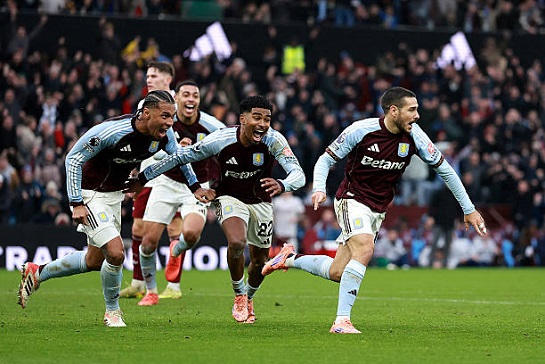 Борьба за чемпионство в Англии снова обостряется. «Астон Вилла» одержала седьмую победу подряд, прервав попутно впечатляющий беспроигрышный рывок «Арсенала», длившийся с конца августа и позволивший «канонирам» захватить лидерство в АПЛ. Теперь отставание той же «Виллы» от «канониров» составляет всего три очка. Матч был наполнен равной борьбой с разными по остроте и динамике отрезками. Временами соперники поедали друг друга прессингом, не позволяя обострять. А порой обменивались опасными уколами, которые могли приводить к голам. Открыть счет удалось «Астон Вилле», которая забила усилиями Кэша. В начале второго тайма вышедший на замену Троссар восстановил равновесие, и инициатива перешла было к «Арсеналу». Но бирмингемцы выстояли и сами стали переворачивать игру, выравнивать ее и перехватывать нити. Казалось, что ничья – вполне закономерный результат. Однако в компенсированное время в последней атаке вышедший на поле за семь минут до этого Буэндиа принес хозяевам победу. ![]() Фото - Getty Images В чемпионате Англии продолжается погоня за лидирующим «Арсеналом». В очередном туре вызов «канонирам» бросает «Астон Вилла», которая после 14 матчей занимает третье место, отставая от лондонцев на шесть очков. Между ними еще разместился «Манчестер Сити», который опережает бирмингемцев на один балл. Сама «Вилла» оторвалась от «Челси» на три очка. Положение плотное, но не такое, каким было совсем недавно, и не такое, как чуть ниже, где огромное количество команд в трехочковом диапазоне. И «Арсенал», и «Астон Вилла» имеют беспроигрышные серии. Хозяева выиграли шесть последних матчей подряд во всех турнирах. А «Арсенал» зато не проигрывает с конца августа. В предыдущем туре «Астон Вилла» одолела «Брайтон» (4:3), чуть ранее – «Вулверхэмптон» (1:0) и «Янг Бойз» (2:1) в Лиге Европы. «Арсенал» в минувшем туре справился с «Брентфордом» (2:0), перед чем сыграл вничью с «Челси» (1:1) и одолел «Баварию» (3:1) в Лиге чемпионов. В прошлом сезоне «Астон Вилла» дома уступила «Арсеналу» (0:2), но на выезде сыграла вничью – 2:2. Что касается потерь, то у хозяев отсутствуют Мингс и Баркли, а у гостей – Габриэл, Хаверц, Москера и Салиба. Матч начался с взаимного высокого прессинга. Команды сразу обозначили свой агрессивный настрой, но такие встречные действия не способствовали обострению. Разрушать и перехватывать у игроков получалось лучше, чем созидать. Под давлением чуть не допустили ошибку «канониры». Райя поскользнулся, принимая пас от Тимбера, и мяч чуть не юркнул в ворота. Через пару минут напряглись болельщики «Астон Виллы». Тимбер уже нашел впереди Сака, который прострелил на Эдегора, который пробил вроде бы под штангу, но Мартинес справился. Куда более остро по истечении десятиминутки ответила «Астон Вилла». Уоткинс получил мяч в центре штрафной, ушел от Тимбера и пробил с разворота, но Райя блестяще среагировал. Обмен выпадами продолжил Сака. Он в центральной зоне оказался и здорово отклеился от опеки, получив навес от Уайта. Удалось пробить головой, но мяч проскочил около девятки. Соперники словно испугались такой своей прыти и стали постепенно сбавлять обороты, подольше придерживая мяч. Получше это получалось у «Арсенала». Он начал играть первым номером, а «Астон Вилла» активно прессинговала и выжидала момент. В середине тайма «Арсенал» все же разобрал оборону