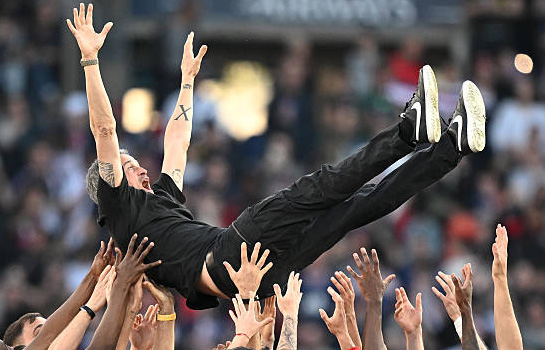 | Завершился 28-й тур чемпионата Франции, по итогам которого чемпионский титул оформил "При Сен-Жермен", выигравший Лигу 1 на шесть туров до окончания сезона. "Золотым" матчем оказался поединком с "Анже", в котором команда Луиса Энрике справилась со счётом 1:0. Отдельно поздравим с первым чемпионством в карьере Матвея Сафонова! Что касается борьбы за второе место, то тура вернулся "Марсель", обыгравший дома "Тулузу" со счётом 3:2 и набравший 52 очка. На третью позицию опустился "Монако", уступивший на выезде "Бресту" 1:2. У монегасков по-прежнему 50 баллов. Вплотную к команде Ади Хюттера приблизился "Страсбур", который на выезде оказался сильнее "Реймса" 1:0. Тут же идёт и "Лион", одержавший пятую победу подряд в Лиге 1. ФНК подводит итоги 28-го тура чемпионата Франции. ![]() Фото - Getty Images. ПСЖ – чемпион! "Пари Сен-Жермен" дома играл против "Анже". Этот поединок был чемпионским для команды Луиса Энрике. Ещё в прошлом туре парижане могли оформить очередные для себя золотые медали, но "Монако" в дерби Лазурного берега одолел "Ниццу" и отсрочил чемпионство ПСЖ. Для завоевания титула парижанам необходимо было набрать один балл в оставшихся семи турах. Ну, тут, как говорится, без вариантов. Очередным соперником стал "Анже", которые проиграл четыре матча подряд и не забил ни одного мяча. Вообще никто не сомневался, что ПСЖ станет чемпионом по итогам отчётного тура. Мудрый Луис Энрике, учитывая скорый первый матч четвертьфинала Лиги чемпионов с "Астон Виллой", выпустил в стартовом составе далеко не всех своих лидеров. Некоторые из них остались отдыхать на скамейке запасных, но по ходу встречи всё равно появились на поле. Что касается вратарской позиции, то в чемпионском поединке вышел Джанлуиджи Доннарумма, тогда как Матвей Сафонов остался на скамейке запасных. ПСЖ с первых же мгновений встречи завладел гигантским территориальным преимуществом, которое переваливало за 90% по владению мячом. Но при этом по-настоящему опасных моментов долгое время не было. Лишь на 31-й минуте Заир-Эмери с правого фланга исполнил подачу между двух центральных защитников, а Рамуш пробил головой с линии вратарской. Всё было сделано здорово, но мяч просвистел над перекладиной. Вскоре Витинья опасно пробил под перекладину с дальней дистанции. Фофана в прыжке кончиками пальцев дотянулся до мяча и отбил его на угловой. Это был очень красивый эпизод. Парижане однозначно добавили в концовке первого тайма и были близки к тому, чтобы открыть счёт, но "Анже" выстоял. В очередном эпизоде Кварацхелия справа исполнил мягкую подачу во вратарскую гостей, Рамуш опередил защитника, но головой пробил выше ворот их выгодной позиции. Первый тайм так и завершился с нулями на табло. Едва началась вторая 45-минутка, как центральный нападающий "Анже" Эстебан Леполь после заброса с правого фланга оказался в трёхметровом офсайде, но всё равно выскочил один на один с Джанлуиджи Доннаруммой и вколотил мяч в сетку. Понятное дело, что гол не был засчитан. В ответ – ПСЖ открыл счёт, забив уже по всем правилам. Кварахцелия на левом фланге классно развернул защитника, оценил ситуацию в штрафной и выполнил подачу прямо на ногу Дуэ, который с лёта переправил мяч в сетку ворот "Анже" – 1:0! После этого команда Луиса Энрике продолжала атаковать и создавать моменты. В очередном эпизоде Руис после паса Дуэ нанёс классный удар по в