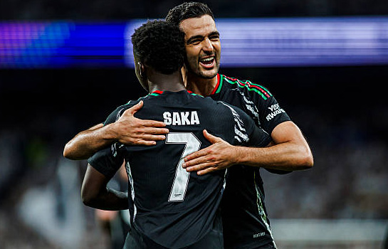 Не получилось у «Реала» сотворить чудо в Лиге чемпионов и отыграть три мяча у «Арсенала». Не в том состоянии сейчас команда Карло Анчелотти. Более того, «канониры» смогли увезти победу и из Испании. Первый тайм получился безголевым, хотя хозяева прикладывали максимум усилий, чтобы надавить на лондонцев. Впрочем, показательно, что ни одного удара в створ до перерыва «Реал» не нанес. Зато чуть не пропустил с пенальти – Куртуа отразил удар Сака с «точки». Мог случиться и одиннадцатиметровый в другие ворота, однако рефери после просмотра повтора отменил пенальти в пользу «Реала». Во втором тайме существенных перемен в содержании игры не случилось, зато команды хотя бы обменялись голами в середине тайма. На мяч Сака «Реал» быстро ответил голом Винисиуса. А развить этот успех не получилось. «Арсенал» грамотно контратаковал и в компенсированное время добил соперника голом Мартинелли. В полуфинале Лиги чемпионов «канониры» сыграют с «ПСЖ». ![]() Фото - Getty Images. Предыстория. Первый матч между «Арсеналом» и «Реалом» оставил не так много интриги. Лондонцы дома победили со счетом 3:0, в том числе благодаря двум гениально исполненным штрафным от Деклана Райса. Конечно, мадридцы выпутывались из разных передряг, но, кажется, что сейчас они не в той форме, чтобы повторять свои невероятные спасения. Перед тем матчем они уступили «Валенсии» (1:2) в Ла Лиге. А после сумели одолеть «Алавес» (1:0), сохранив отставание в четыре очка в чемпионате Испании от лидирующей «Барселоны». «Арсенал» тоже идет вторым в своем чемпионате – он отстает от «Ливерпуля» на 13 баллов и опережает «Ноттингем Форест» на шесть. «Канониры» после встречи с мадридцами в АПЛ сыграли вничью с «Брентфордом» (1:1). Они не проигрывают в девяти поединках подряд. Что касается потерь, то у хозяев отсутствуют Менди, Карвахаль, Милитао, Камавинга и Лунин, а у гостей – Жезус, Томиясу, Хаверц, Габриэл, Калафьори, Жоржиньо. Ход матча. Чтобы получить надежду на спасение, «Реалу» необходимо было забивать быстрый гол. Мадридцы с этим почти справились. Быструю атаку разогнал Мбаппе, отпасовал налево на Винисиуса, который подал на дальний край вратарской, откуда Килиан грудью скинул мяч в сетку. Но он находился в явном офсайде, что судья и зафиксировал. Мадридцы не спорили, а публика сразу принялась освистывать Райю, который с первых минут начал затягивать время. Когда же игра возобновилась, «Реал» снова уколол слева. Теперь прострел Винисиуса не достиг адресата. А контратаку сорвал Алаба, получив желтую карточку за снос Сака. «Арсенал» огрызнулся как раз усилиями Букайо. Он справа оказался свободен и крутил в дальний угол – совсем немного не попал в цель. Мадридцы вновь отправились вперед. Родриго теперь справа простреливал мощно – никого мяч не задел во вратарской. Вновь отвечали лондонцы усилиями Сака. Он аккуратно сместился к центру справа перед штрафной, винтил в дальний угол, но Куртуа справился. Подачу с углового перехватил вратарь, но включился ВАР. Оказывается, у вратарской Асенсио сбил рвавшегося туда Мерино. И рефери назначил пенальти, показав предупреждение защитнику. К «точке» подошел под неистовый свист Эдегор, а потом передал мяч Сака. Букайо с левой мягко подрезал мяч в левый же от себя угол, но туда упал и Куртуа, который рукой смахнул его в сторону. Оставил «Реал» в игре – насколько это 
