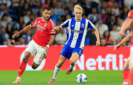 | В 8-м туре чемпионата Португалии были сыграны два центральных матча. "Порту" и "Бенфика" не смогли выявить сильнейшего, разойдясь миром со счётом 0:0. А "Спортинг" и "Брага" тоже сыграли вничью, но с результатом 1:1. Соответственно на первом месте в турнирной таблиц идёт "Порту", у которого 22 очка. Далее с 19-ю баллами располагается лиссабонский "Спортинг", а замыкает тройку лидеров "Бенфика". У команды Жозе Моуринью 18 очков. "Жил Висенте" со счётом 2:0 переиграл "Эштрелу", набрал 16 баллов и вошёл в число группы лидеров. Следом в турнирной таблице идёт "Морейренсе", у которого после поражения от "Насьонала" осталось 15 очков. ФНК подводит итоги игрового уик-энда в португальской примейре. ![]() Фото - Getty Images "Порту" и "Бенфика" обошлись без забитых мячей В центральном матче 8-го тура чемпионата Португалии на стадионе "Драгау" встречались "Порту" и "Бенфика". После 7-ми туров "драконы" являлись единоличными лидерами турнирной таблицы с 21 баллов, а у лиссабонских "орлов "было 17 очков и третья позиция. В отчётном поединке оба тренера сыграли по схеме 4-2-3-1. Стартовый отрезок поединка прошёл в равной борьбе без единого опасного момента. Оппоненты вели большое тактическое противостояние, так что оборонительные редуты превосходили своих атакующих оппонентов. На 12-й минуте в жёстком стыке сошлись Вангелис Павлидис и Алан Варела, та что обоим потребовалась помощь медицинской бригады. После паузы футболисты пришли в себя и возобновили поединок. Аккурат в середине первого тайма футболисты "Порту" провели массированную атаку, которая завершилась падением в штрафной площади "Бенфики". Подопечные Франческо Фариоли требовали назначить пенальти, однако судейская бригада во главе с Мигелом Ногейрой посчитала, что никакого нарушения правил не было. На 33-й минуте Георгий Судаков, который постепенно становится новым лидером "Бенфики", нанёс классный дальний удар по воротам, однако великолепный Диогу Кошта среагировал и выручил свою команду. В ответ - Габриэль Вейга за счёт дриблинга прошёл нескольких оппонентов и был близок к голу, но мяч после его опаснейшего удара пролетел рядом со штангой. На 42-й минуте футболисты "Порту" организовали отличную комбинацию, так что на ударной позиции оказался Алан Варела, но его выстрел из пределов штрафной площади в последний момент был заблокирован. Первым на подборе оказался Габриэль Вейга, однако и после его опаснейшего выстрела мяч попал в футболиста "Бенфики". В самой концовке первого тайма футболисты "драконов" всерьёз претендовали на пенальти, однако арбитры решили, что фола всё-таки не было. Во втором тайме было мене интересно. На 61-й минуте Вангелис Павлидис имел возможность открыть счёт, однако в последний момент футболист "Порту" успел броситься под мяч. Далее пошли паузы, травмы, замены… В общем, темп игры сильно снизился. На 90-й минуте на замну у "Порту" вышел Родригу Мора. Именно он уде в компенсированное время мог принести победу "драконам", но мяч после удара 18-летнего португальца попал в перекладину. Финальный свисток зафиксировал нулевую ничью. У "Порту" 22 очка и единоличное лидерство, а у "Бенфики" 18 баллов и третья строчка в турнирной таблице. "Спортинг" упустил победу в матче с "Брагой" Лиссабонский "Спортинг" на своём поле принимал "Брагу". Команда Руя Боржеша активно начала встречу и в самом начале провела размашистую ат