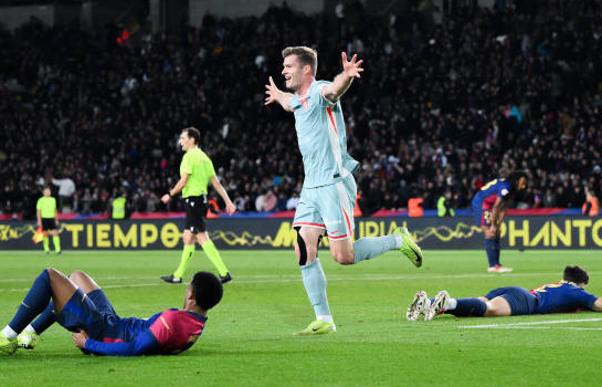 | Предпоследний тур первого круга Примеры окончательно утвердил кризис «Барселоны». Теперь каталонцы потеряли лидерство не только по потерянным очкам, а даже и по набранным, пропустив одним махом впереди себя и «Реал», и «Атлетико», которому впервые за 18 лет проиграли на домашнем стадионе, причем номинальное отставание от «матрасников» составляет 6 баллов, и вничью в ответке в Мадриде на данный момент играть не представляется возможным. Посмотрим, что выжмет Флик из своей команды почти за месяц перерыва, будет ли он жертвовать Кубком и Суперкубком Испании. Трансферов у каталонцев не будет, разве что на выход. «Реал» переиграл «Севилью» в очередном прощальном матче Хесуса Наваса, но сделал это с небольшими огрехами в концовке. Можно сколько угодно хвалить Мбаппе и его акклиматизацию, но пока что Килиан порет моментов куда больше, чем реализовывает. Сместить с третьего места вскоре «Барсу» может и «Атлетик», который продемонстрировал волю в Памплоне, обыграв «Осасуну», а вот «Реал Сосьдедад» снова пошел по затухающей, без шансов уступив в два мяча в Виго. Арсен Захарян... Ну, вы понимаете. Минимальные победы одержали островные команды – «Мальорка» и «Лас-Пальмас», причем балеарцы обыграли «Хетафе» в Мадриде, а канарцы дожали дома «Эспаньол». Также в Мадриде феерию выдал «Вильярреал», который вкатил сразу 5 голов «Леганесу», правда, «лега», оставившие все силы в Барселоне, доигрывали вдевятером. Разгром был и в Жироне, где жертвой пал «Вальядолид», но «пусела» не забили вовсе. Наконец, «Валенсия» чудом избежала домашнего поражения от «Алавеса» (2:2), а «Бетис» и «Райо Вальекано» также расписали ничью. ![]() Фото - Getty Images. Есть у «Атлетико» при Симеоне одна особенность. Вернее, была. Дон Диего никогда не выигрывал в Барселоне, а единственная засчитанная гостевая победа – номинальна. Это Суперкубок, который игрался в Саудовской Аравии. Теперь «Эль Чоло» может данный гешефт для себя закрыть, хотя тут просто повезло. И не надо про феноменальное чутье аргентинца и все такое: матч был полностью проигран по игре, хоть и выигран по результату, а в таблицу идет именно он. Первые 30 минут команды играли в типичный футбол: контроль мяча против плотной обороны. Рафинья вскрывал финтами справа, но дальше дело не шло. Как только перевели налево, а Гави подставил пятку под пас от Педри, пытаясь обработать, получилась ответная передача другу на ход, а сам Педри с линии вратарской спокойно обвел Облака. «Атлетико» нанес за первый тайм 0 (!) ударов в створ чужих ворот, да и в сторону ворот было примерно столько же. После перерыва «Атлетико» посыпался. Хименес привез на свои ворота контратаку после перехвата от Рафиньи, но Облак спас после удара Фермина Лопеса в упор. Затем Педри не попал из штрафной по воротам, а сам Рафинья, выйдя один на один, перебросил кипера и угодил в перекладину. «Атлетико» провел первую атаку во втором тайме четверть часа спустя и... забил. После прострела слева от Альвареса Касадо зачем-то решил эффектно отбросить мяч пяткой из штрафной не глядя. Получилось на ногу Де Паулю, который с дуги влепил под правую стойку. «Барса» поднажала, но Левандовски никак не мог найти себя в штрафной, а удары Рафиньи шли или мимо, или в Облака. Барриос, вывалившийся один на один с Пеньей, также дуэль киперу проиграл. За 2 минуты до конца основного времени кат