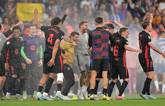 | Свершилось! Каталонская «Барселона» досрочно оформила чемпионский титул и сделала это в поединке против второго самого принципиального соперника после «Реала» – «Эспаньола». Примечательно, что дерби завершилось с преимуществом сине-гранатовых в два мяча, но первый и победный забил главный испанский гений последних лет – Ламин Ямаль. Да, скорее всего, Роберт Левандовски уступит звание лучшего бомбардира Примеры Килиану Мбаппе, но у француза в его дебютном сезоне нет ни одного внутреннего титула, тогда как поляк забрал сразу три. Из других ключевых событий отметим уже свершившийся вылет «Лас-Пальмаса», который потопила «Севилья». Во главе андалусийцев уже не экс-тренер «островитян», но он свою руку, скажем так, тоже приложил. Неприятно удивили поклонников «Бетис» и «Атлетико». Севильцы, кажется, проиграли борьбу за Лигу чемпионов, не сумев в гостях обыграть «Райо Вальекано», а «матрасники» и вовсе уступили на выезде «Осасуне». Настоящий триллер развернулся в Мадриде в среду, где ослабленный травмами «Реал» чуть не подарил ничью «Мальорке», но дебютный гол на взрослом уровне Якобо Рамона помогли добыть волевую победу и на один день отсрочили чемпионство каталонцев. Среди остальных поединков отметим викторию разрезвившегося «Вильярреала», домашнее поражение безвольного «Реала Сосьедад» и вернувшийся на победные рельсы «Атлетик». Провалы «Бетиса» и «Атлетико». Похоже, команда Мануэля Пеллегрини все-таки не сыграет в Лиге чемпионов. После осечки с «Райо Вальекано» нужно выигрывать дважды и желательно разгромно, а «Вильярреал» должен не набрать ни очка, или максимум одно, но с плохой разницей мячей. «Пчелы» также сражаются за еврокубки, поэтому нельзя сказать, что они прям действовали из принципа, нет. Турнирной мотивации тут тоже полно. Подопечные Иньиго Переса ее проявили в первом тайме, когда дважды поразили ворота Адриана. Педро Диас метров чуть ли не с 40 зарядил по воротам, попал в перекладину, а прибежавший Де Фрутос головой добил снаряд в цель. Подозрения на офсайд отмел ВАР. В самом конце компенсированного времени Лежен шикарным выстрелом со стандарта прошил низом и «стенку», и правую «шестерку» ворот Адриана. Казалось, «огурцам» не отыграться, но еще в первой трети тайма второго гости сравняли счет. Кучо Эрнандес завершил классным ударом сольный проход из центра поля, а Иско реализовал пенальти, назначенный за фол Лежена. Играть было еще 30 с лишним минут, но голов зрители больше не увидели, хоть ничья не устроила никого. ![]() Фото - Getty Images «Атлетико» захандрил, бросил играть и докатывает сезон. «Осасуна» же может гордиться тем, что за чемпионат сняла скальп еще с одного гранда, ведь в первом круге в Памплоне пала «Барселона». На угловом Ле Норман за руку держал Будимира, но подача с правого корнера в середине первого тайма пошла от Сарагосы на Катену, который головой и вколотил снаряд мимо Облака. «Атлетико» чуток встрепенулся и придумал удар Серлота, но Эррера потащил на «ленточке». После перерыва у мадридцев с настроем и креативом стало еще хуже, плюс Эррера в очередной раз поймал кураж и даже 1,28 по xG ничем не помогли «матрасникам». Хозяева же дождались своего шанса и на последней десятиминутке воткнули второй, когда Барха вырезал подачу с левой бровки, а Будимира в штрафной все-таки не удержали и он головой в паде