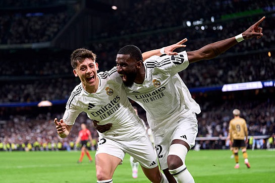 В ответной игре 1/2 финала Кубка Испании мадридский "Реал" с колоссальным трудом прошёл "Реал Сосьедад" по итогам овертайма - 4:4! Несмотря на минимальную фору "сливочных" после первого матча, абсолютное большинство экспертов не верили в камбэк сансебастьянцев. Один удачный матч, конечно, не может перечеркнуть все невзгоды "Сосьедада" в этом сезоне, однако перед парнями Альгуасиля всё равно стоит снять шляпу. "Бело-голубые" забили быстрый гол стараниями Барренечеа, воспользовавшись первым же опасным моментом у ворот Лунина. "Мадрид" оперативно восстановил статус-кво, когда Эндрик воплотил в гол первоклассный пас Винисиуса. Всё самое вкусное команды оставили на десерт, а именно на заключительную четверть основного времени. Алаба срезал мяч в собственные ворота после прострела Марина, а гол Оярсабаля вывел "Сосьедад" вперёд в 2-матчевом противостоянии! "Реал" повернул всё вспять после результативных ударов Беллингема и Чуамени, однако поздний гол Оярсабаля со стандарта всё же перевёл увлекательную "королевскую" дуэль в дополнительное время. В овертайме команда Анчелотти была свежее и напористее басков, что вылилось в гол вышедшего на замену Рюдигера с углового. "Реал" стал первым финалистом Кубка Испании. В решающей игре "сливочных" ждёт либо дерби против "Атлетико", либо эль-класико с "Барселоной". ![]() Фото - Getty Images Предыстория. В ответном полуфинальном матче Кубка Испании в Мадриде "Реал" встретится с "Реалом Сосьедад". В конце февраля "сливочные" минимально победили в Стране Басков благодаря голу Эндрика - 1:0. Пять лет назад команда Иманоля Альгуасиля ещё с Эдегором, Исаком и Мерино в составе выбивала "Реал" из Кубка Короля на "Сантьяго Бернабеу" (4:3). Удастся ли "бело-голубым" сотворить сенсацию в своём нынешнем проблемном состоянии? Действующий чемпион Испании и триумфатор Лиги чемпионов сейчас тоже далёк от идеала, однако "королевский клуб" по-прежнему претендует на первый требл. В новом календарном году "Мадрид" набрал 23 очка в 11 турах Ла Лиги - второй результат на данном отрезке сезона. "Сливочные", наверное, играют не столь феерично как "Барселона", но отставание в одну победу за девять матчей до финиша оставляет мадридцам осязаемые шансы на защиту титула. После международного перерыва "Реал" продемонстрировал характер в дерби с "Леганесом" - 3:2. Что касается "Сосьедада", то не покидает ощущение, что сансебастьянцы упёрлись в потолок, а цикл Альгуасиля подходит к концу. Периодически баски ещё напоминают свою лучшую версию, славящуюся интенсивным высоким прессингом, но всё чаще и чаще "чури-урдин" скатываются в стерильный контроль мяча... После паузы на игры сборных "Реал Сосьедад" прервал 6-матчевую безвыигрышную серию во всех турнирах, совладав дома с "Вальядолидом" (2:1). Хозяева недосчитались Куртуа, Милитао, Менди, Карвахаля и Себальоса. Сансебастьянцам в столице не помогут Пачеко, Одриосола, Мендес, Захарян и Беккер. Ход матча. Анчелотти произвёл шесть замен в стартовом составе "Реала" через два дня на третий после игры с "Леганесом". Алаба был призван составить дуэт защитников с Асенсио, тогда как с возвращением в центр поля "галактикос" Чуамени и Вальверде на левый край обороны мадридцев переместился Камавинга. В группе атаки "Мадрида" с первых минут вышли отдохнувшие "пентакампеоны" Винисиус, Родриго и Эндрик. Альгуасиль сменил ровно по
