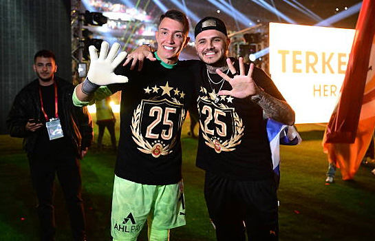 | У Жозе Моуринью официально не получилось с первой попытки выиграть турецкий чемпионат, а вот будет ли вторая? На этот счёт есть сомнения, а вот сомневаться в том, что у «Галатасарая» теперь 25 чемпионских титулов, не приходится. Окан Бурук взял третье подряд «золото» и повторил достижение легендарного Фатиха Терима, у его клуба над эмблемой теперь будут красоваться пять звёзд. Если вспомнить про завоёванный на неделе Кубок, то сезон получается действительно историческим. Для Фернандо Муслеры уж точно. И не только потому, что в матче против «Кайсериспора» он умудрился забить гол, просто уругвайский вратарь отныне является самым титулованным футболистом в истории турецкого футбола. «Фенербахче» свой матч против «Эюпспора» тоже выиграл, но вряд ли это принесло «канарейкам» много радости. Потерял третью позицию «Бешикташ», осечкой которой воспользовался «Самсунспор». Досрочно определилась третья команда, которая элиту покидает, и ею стал «Сивасспор». «Бодрумспор» за своё место под солнцем ещё поборется, «Башакшехир» не сдаётся в сражении за еврокубки, а «Ризеспор» и «Гёзтепе» забили сразу девять голов за один матч – подводим итоги очередного тура Суперлиги в традиционном обзоре на ФНК. ![]() Фото - Getty Images «Галатасарай» и его пятая звезда. Обошлось без сенсации и ненужного растягивания чемпионской интриги. Подопечные Окана Бурука в домашней игре разгромили «Кайсериспор» и оформили 25-е чемпионство в своей истории, а заодно и получили пятую звезду над клубной эмблемой. И сделали это первыми из всех турецких клубов. Игра против не самого мотивированного оппонента предсказуемо превратилась в праздник по-стамбульски – с переполненным стадионом, с большим игровым перевесом и почти что с полным отсутствием интриги. Уже до перерыва судьба встречи была решена: Осимхен забил после передачи Габриэля Сары, который, вероятно, летом поедет куда-то на повышение, всего через три минуты после этого Йылмаз воспользовался ассистом Торрейры. Уругваец – временно или нет – перестал забивать, но очки по системе «гол плюс пас» набирает стабильно. Во втором тайме и голов было меньше, и карточек (в первой половине хозяева собрали сразу три «горчичника», во второй набралось два на две команды). Вишенкой на праздничном торте стал гол вратаря: Фернандо Муслера на 89-й минуте пошёл бить одиннадцатиметровый удар, и не промахнулся. За неспортивное поведение при праздновании получил жёлтую карточку, но это вряд ли сильно испортило ему настроение – уругваец теперь официально самый титулованный футболист в истории турецкого футбола (восемь побед в чемпионате, пять триумфов в Кубке, шесть завоёванных Суперкубков). Бесполезная победа «Фенербахче». Тренерское противостояние опыта и молодости – так можно было охарактеризовать битву Жозе Моуринью и Арды Турана. Сложилась она в пользу Особенного, а ещё получилась необычайно яркой. «Фенербахче» и «Эюпспор» действовали так, словно бы результат встречи над ними не довлел. Впрочем, это действительно было так, учитывая лишь призрачные шансы «канареек» сместить «Галатасарай» с первой строчки и отсутствие у «Эюпспора» надежд зацепиться за еврокубки. Первый тайм целиком и полностью прошёл под диктовку хозяев поля, которые нанесли в пятнадцать раз больше ударов по воротам и забили на один гол больше: на 32-й минут