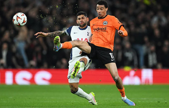 Сумел «Айнтрахт» выстоять в Лондоне, хотя просто не было. «Орлы» первыми забили на шестой минуте встречи, когда Экитике поразил правый нижний угол ворот конкурента. Но «Тоттенхэм» быстро сравнял счет, Сон, Соланке и Мэддисон здорово сыграли, мяч оказался у Порро, который пяткой оставил Сантоса не у дел. Кстати, вратарь франкфуртцев в дальнейшем очень много раз выручил гостей, ибо «шпоры» самый настоящий штурм немецких ворот устроили во второй половине встречи. Но цифры на табло больше не менялись. Конечно, ничья устроила представителей Бундеслиги, вот только дома команде Топмеллера надо будет действовать смелее, уж точно не вторым номером играть. Постекоглу стоить поговорить со своими ребятами о том, как действовать в завершающей стадии атак, нужно поработать над результативностью. Пока что «Айнтрахт» выглядит фаворитом данного противостояния, но конкурент показал, что готов отдавать все силы на поле. В Германии бой наверняка получится зрелищным, далеко не факт, что «орлы» пройдут дальше, но пока из всей Германии у них больше шансов на дальнейший успех в еврокубках, т.к. «Бавария» и дортмундская «Боруссия» оказались в крайне непростых ситуациях на полях Лиги чемпионов. ![]() Фото - Getty Images. Предыстория. Плохи дела у Германии в еврокубках. «Бавария» дома проиграла «Интеру» (1:2), а дортмундская «Боруссия» вообще развалилась на выезде, сражаясь с «Барселоной» (0:4). Остается «Айнтрахту» в гостях побороться с «Тоттенхэмом» и оставить хоть какие-то надежды немецким болельщикам на то, что Бундеслига еще повоюет. «Шпоры» не являются крутым оппонентом, идут лишь на 14-й строчке в АПЛ, так что «орлы» вполне способны сражаться с ними. У гостей Трапп травмирован, но и Сантос неплохо справляется, а о потере Мармуша, ушедшего в «Манчестер Сити» никто толком не вспоминает. Можно было сказать, что «орлам» повезло с противником, да и дальше в потенциальном полуфинале «Буде-Глимт» или «Лацио» выглядят достаточно проходимыми, так что надо было радоваться подобным раскладам и справляться с «Тоттенхэмом» по сумме двух дуэлей. В целом, многие специалисты (да и букмекеры тоже) склонялись к тому, что именно немцы попадут в четверку сильнейших на турнире. Гости начали поединок с потерь, хорошо, что мяча, а не в составе. «Тоттенхэм» выглядел солиднее и увереннее, но это были лишь стартовые мгновения дуэли. Однако первыми отличились именно немцы, причем сделали они это довольно быстро. Схири из центра оформил передачу на левый фланг, Экитике там сместился в зону перед штрафной, последовал четкий выстрел в правый нижний угол ворот конкурента, вот и гол на шестой минуте. И чем Юго хуже Мармуша? Да ничем, уже доказал он это. Лондонцы, разумеется, останавливаться не собирались, нужно было отыгрываться. Сон классно пробежал вперед, прострелил вдоль ворот, только вот Сантос не промах, все предугадал и «снаряд» забрал. Далее Соланке со «второго этажа» выстрелил, однако получилось прямо в руки вратаря. Вышеназванный спортсмен потом к дальней стойке посылал «снаряд», Сантос не сориентировался, Джонсон попытался замкнуть головой передачу, но повезло «орлам», что Теате первым на мяче оказался и перевел перекладину. Казалось, положение «вне игры» было, но никто из арбитров об этом не сигнализировал. Сон потом, между прочим, отправил «снаряд» на ближнюю сторону чужой штраф