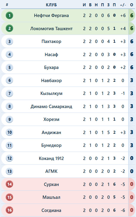 Тройка призёров идёт без потерь. Обзор 2-го тура чемпионата Узбекистана.
