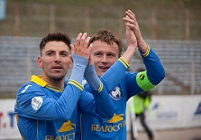 В заключительном матче тура брестское "Динамо" на своём поле принимало "Минск". Брестчане лихо начали сезон, одолев в первом туре на выезде "Торпедо-БелАЗ" (3:1). Да и в кубке они сохранили неплохие шансы на выход в финал. "Минск" в прошлом туре не смог распечатать ворота "Нафтана", однако и сам оставил свои ворота на замке (0:0). Последний матч между этими клубами завершился крупной победой минской команды со счётом 5:2. Хозяева активно начали встречу, но первый момент случился лишь в середине тайма, когда Василюк получил оперативный простор, обработал мяч и пальнул по воротам, а мяч просвистел рядом со стойкой ворот Климовича! А счёт был открыт хозяевами на 37-й минуте. Климович грубо ошибся на выходе после подачи в штрафную и Премудрову осталось лишь переправить мяч с метровой дистанции в пустые ворота. С этим полузащитник "Динамо" справился безупречно! В общем, после невнятного старта, динамовцы сумели выровнять игру, а местами и доминировали над соперником. Грозная по именам атакующая группа гостей никак себя не проявила и запомнилась лишь дальними ударами. В самом начале второго тайма Фомичев очень далеко вышел из ворот, и Омельянчук с середины поля закинул мяч за шиворот голкипера, но штанга спасла ворота "Динамо"! На исходе часа игрового времени три в одного убегали "горожане" в контратаку. Ковель сделал всё грамотно и сбросил под удар Хващинскому. Но последний переиграть вратаря не смог. На 70-й минуте Остроух сместился с левого фланга и пробил с линии ворот, Фомичев удара не ждал, а мяч угодил прямо в штангу! В концовке ещё были моменты у обеих команд, но счёт больше не изменился. В итоге "Динамо" одержало вторую победу в чемпионате и теперь разделяет с БАТЭ первую строчку в турнирной таблице. Только эти клубы на данный момент не теряли очков в высшей лиге. "Минск" в отчётном матче вроде и старался атаковать, но по-настоящему опасных моментов было не так уж и много. Отдельно стоить отметить капитана брестчан: Василюк пребывает в отличной форме и ведёт за собой команду. После матча главный тренер брестского "Динамо" Сергей Ковальчук сказал: "Тяжело нам во всех смыслах. Проявили в очередной раз характер. Огромное спасибо болельщикам, которые помогали. Совсем другая атмосфера, футбольная. Надеюсь, что своими маленькими успехами соберем на трибунах больше людей. Нам сложновато не только из-за короткой скамейки, но и... Ладно, это наши проблемы, плакаться не буду". В свою очередь, рулевой "Минска" Андрей Пышник сказал: "Футбол получился зрелищным, с обилием моментов. Мы рассчитывали на другой результат, приехали за победой и, конечно, проигрыш нас огорчил. Получилось два разных тайма, не знаю почему. Видно, что команда и двигается, и сил хватает. Побеждает тот, кто забивает на один гол больше. Сегодня это было брестское "Динамо".