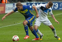 | Все три лидера белорусского футбола в рамках 11-го тура одержала победы. Солигорский "Шахтер" сохранил за собой единоличное лидерство, дома уверенно переиграв "Витебск". Команда Олега Кубарева отправила в ворота соперника два безответных мяча, авторами которых стали Илья Алексиевич и Денис Лаптев. А вот победа БАТЭ в домашнем матче с "Днепром" далась с трудом. Первый тайм завершился без забитых мячей, а во второй половине встречи действующие чемпионы быстро забили два гола. Но вскоре после ошибки Сергея Веремко "Днепр" отыгрался, а в концовке команда из Могилева и вовсе могла вырвать ничью, но удача оказалась на стороне жёлто-синих. БАТЭ победил и по-прежнему отстаёт от "Шахтера" на три очка. Следом за борисовчанами в турнирной таблице идут футболисты минского "Динамо". Команда Сергея Гуренко уверенно расправилась со "Славией", создав много голевых моментов, но победив всего лишь со счётом 2:0. О главных событиях 11-го тура чемпионата Беларуси в традиционном обзоре на ФНК.