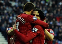 В первый день нового 2013-го года возьмет старт двадцать первый тур английской Премьер-Лиги. Лидер чемпионата «Манчестер Юнайтед» пожалует в гости к «Уигану». Противостояние этих соперников можно назвать дерби, так как города, в которых базируются данные клубы, входят в состав графства Большой Манчестер. В предыдущем туре обе команды сыграли успешно. «Латикс» на выезде разгромили бедствующую «Астон Виллу» со счетом 3:0. Сейчас подопечные Роберто Мартинеса занимают шестнадцатую строчку в турнирной таблице. «Красные дьяволы», в свою очередь, в минувшую субботу достаточно уверенно обыграли «Вест Бромвич» на своем поле со счетом 2:0. Как уже было сказано выше, дружина сэра Алекса Фергюсона, который накануне отметил свой семьдесят первый день рождения, на данный момент довольно уверенно лидирует в Премьер-Лиге. История противостояния «Уигана» и «Манчестер Юнайтед» в чемпионатах Англии насчитывает пятнадцать матчей. «Латикс» имеют в своем активе лишь одну победу, а «красные дьяволы» - четырнадцать. Вничью команды в Премьер-Лиге еще не играли. В нынешнем сезоне в поединке первого круга «МЮ» отпраздновал уверенную победу со счетом 4:0. У хозяев из-за травм сегодня не сыграют Бен Уотсон, Альберт Крусат, Рио Мияити и Писку, а у гостей в лазарете находятся Фил Джонс, Андерсон, Луиш Нани и Уэйн Руни.