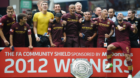 В далёком 1972 году «Манчестер Сити» выигрывал Суперкубок Англии. Тогда была обыграна «Астон Вилла» со счётом 1:0. И вот спустя 40 лет (юбилей) «горожане» вновь поднимают Community Shield, как принято называть данный трофей на Туманном Альбионе, над своими головами. Роберто Манчини начал сезон с красивой победы. «Челси» нисколько не уступал, боролся, использовал моменты и мог, в принципе, даже побеждать. Но удаление защитника Бранислава Ивановича в концовке первого тайма сказалось на общем рисунке игры «аристократов». Всё-таки в меньшинстве против «МанСити» - это крайне неприятная процедура проведения матча на футбольном поле. Подопечные Роберто Ди Маттео снова продемонстрировали свой дух и желание одерживать верх на оппонентом. Но немного не хватило. Кубок отправляется в Манчестер. В целом же, всех можно поздравить. В Англии после сегодняшнего события всё только начинается...