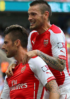 Зато первая жёлтая карточка во встрече осталась за командой Пеллегрини. Фернандо за плечо схватил Уилшира, сорвав атаку. Дебютный «горчичник» показал судьей Оливером по делу. И ведь гол почти сразу могли забить «пушкарям» приезжие. Навас здоров рванул вперёд, оказался быстрее Монреаля, навесил на линию вратарской, а там сильнее всех в битве на «втором этаже» оказался Йоветич, который и пробил головой. Чудо, «снаряд» угодил в штангу, отскочил обратно, Стеван добивал, но уже гораздо выше намеченной цели. И снова момент упущен… а «канониры» организовали свой и забили. Ладно хоть не после упущения Насри это произошло, как в двух предыдущих случаях. На этот раз Жиру получил пас с правой бровки, отлично разобрался в ситуации, разрядил метров с 24-х. Мяч прямо под перекладину улетел, там уже кипер ничего поделать не сумел, даже выйдя из ворот – 3:0. Становилось уже совсем неприлично для «МанСити».