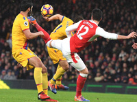 Уже на второй минуте «Арсенал» впервые прорвался в штрафную «Пэлас» - Ивоби и Санчес быстро обыгрались друг с другом на границе штрафной площади гостей, и чилиец на высокой скорости прорвался к воротам – лишь в последний момент защитники его накрыли и выбили мяч на угловой. «Арсенал» в этом матче вынужден был строить атаки без своего плеймейкера Месута Озила, который заболел и не смог выйти на поле. На 6 минуте «канониры» создали первый голевой момент в матче. Гранит Джака получил мяч в центре поля и увидел забегание Монреаля по левому флангу, после чего выдал точнейший дальний пас. Защитник «Арсенала» в касание прострелил вдоль ворот, и лишь сантиметров не хватило Оливье Жиру, а потом и Лукасу Пересу, чтобы замкнуть эту передачу. Однако на этом атака не закончилась – справа мяч подхватил Ивоби и тут же покатил мяч в центр штрафной, откуда пробил Эльнени, но защитник «Кристал Пэлас» заблокировал удар египтянина. Алексис Санчес получил возможность для удара на 12 минуте – после затяжной атаки он получил мяч, продвинулся к границе штрафной и мощно пробил в правый угол, но мяч чуть свалился у него с ноги, и прошел мимо ворот. Через 4 минуты атака с участием Беллерина, Ивоби и Переса закончилась «стеночкой», в результате которой бил нигериец – мяч, направленный в левый няжний угол, «намертво» поймал Хеннесси. А затем, на 18 минуте, Оливье Жиру забил мяч, который наверняка будет претендовать на звание самого красивого гола в этом сезоне. «Арсенал» начал контратаку пасом Бельерина, затем еще в несколько передач быстро дошел до чужой штрафной, и на финальной стадии атаки последнюю передачу выполнял Санчес. Его навес с левого ланга на Жиру, казалось, вышел не очень удобным для француза, но двенадцатый номер «канониров» смог пробить единственным возможным образом – пяткой, достав этот мяч у себя из-за спины. Удар получился удивительным – снаряд полетел точно в «девятку» и рикошетом от перекладины влетел в ворота. Хеннесси был абсолютно бессилен – 1:0, и стадион взревел в восторге от увиденного, а Жиру, не сам не веря тому, что сотворил, побежал праздновать гол вместе с командой. На 26 минуте «Арсенал» снова создал момент усилиями Санчеса – чилиец на дриблинге ушел от нескольких защитников, отдал пас в штрафную Ивоби, а тот сделал передачу на набегающего Эльнени – плотный удар египтянина просвистел в метре от левой штанги. У «Кристал Пэлас» в первые полчаса вообще ничего не получалось – отдельные забросы на Бентеке – и те шли мимо. Кроме того, гости заработали несколько неудачно реализованных стандартов в исполнении Кабая, а обычно активные Заха и Панчон были сегодня как будто не в настроении. На 34 минуте Санчес нанес свой очередной удар – на этот раз он попытался провести его «на исполнение», закрутить мяч в дальний, правый угол, но снова промахнулся. Через пару минут «орлы» провели свою первую внятную атаку – после довольно длительной перепасовки на половине поля хозяев, и нескольких неудачных попыток найти Бентеке забросом в штрафную, мяч получил Кабай, убрал защитника на замахе, но пробил слишком слабо и прямо по центру. Тактика «Арсенала» в атаке в сегодняшнем матче кардинально отличалась от прошлой встречи с «Вест Бромвичем» - гораздо меньше тягучей игры с использованием ккоротких передач, и заметная ставка на быстрые атаки с исполь