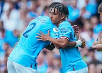 «Манчестер Сити» ожидаемо не испытал больших проблем в домашнем поединке с «Борнмутом». Новичок АПЛ удивил в стартовом туре, одолев «Астон Виллу», однако на «Этихаде» «вишни» ничего не показали. Команда Хосепа Гвардиолы стала давить с первых минут и в дебюте встречи растранжирила целую россыпь моментов. Причём, в отличие от поединка с «Вест Хэмом», первую скрипку играл у «Сити» не Холанн – угроза исходила от всех игроков группы атаки. Однако именно Эрлинг помог хозяевам вскрыть оборону гостей. На 19-й минуте норвежец, развернувшись в борьбе с двумя оппонентами, вывел на ворота Илкая Гюндогана, и тот свой шанс не упустил. Через некоторое время у «горожан» отличились Кевин де Брейне и Фил Фоден. А сам Холанн впервые потревожил голкипера «Борнмута» лишь перед самым перерывом. В начале второго тайма игра немного успокоилась, но затем «горожане» снова принялись наращивать давление. Хозяева транжирили момент за моментом, а гости по-прежнему в атаке почти не напоминали о себе. Де Брейне, Гюндоган, Махрез и Холанн свои шансы не реализовали, но четвёртый гол «Манчестер Сити» всё же провёл – после прострела Жоау Канселу мяч в свои ворота срезал Джефферсон Лерма. «Горожане» в первом домашнем матче сезона порадовали своих болельщиков крупной победой и по разнице мячей обогнали «Арсенал», который также стартовал с двух побед. На данный момент «Манчестер Сити» поднялся на первое место. И, возможно, останется на нём даже после завтрашнего матча «Челси» - «Тоттенхэм».