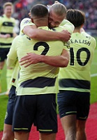 «Манчестер Сити» одержал девятую разгромную победу в текущем сезоне премьер-лиги, во второй раз в сезоне пострадал «Саутгемптон», который в первом круге был бит со счетом 0:4, теперь «святые» ответили одним голом престижа. Вообще поначалу подопечные Рубена Селлеса пытались показывать зубы, не парковали у свой штрафной автобус и держали соперников подальше от своих владений. Надолго хозяев не хватило, постепенно дружина Хосепа Гвардиолы взвинчивала темп, его бомбовая атака взялась за дело, тем более вернулся после травмы Холанн. И именно Эрлинг под занавес первого тайма точным ударом замкнул подачу де Брейне. После перерыва «Саутгемптон» попытался пойти в атаку, турнирное положение у него такое, что нужно набирать очки с любым соперником. Но повторить успех Кубка Лиги, в котором в январе «святые» одолели «горожан» (2:0), не удалось. У хозяев стали появляться свободные зоны, в которые убегали гости, особенно это удавалось Грилишу, который и забил второй мяч. Джек оказался на рандеву с Базуну, с первой попытки его не переиграл, но успешно проявил себя на добивании. Через десять минут Грилиш выступил как ассистент, навесив на Холанна, который ударом через себя оформил дубль. Через несколько минут «святые» сумели ответить своим взятием ворот, Дженепо на дриблинге разобрался с тремя оппонентами, покатил сферу на Мара, который нанес точный удар. И тут же защита «Саутгемптона» допустила ошибку, Уокер-Питерс снес де Брейне в штрафной, пенальти реализовал Альварес. «Манчестер Сити» находится в сумасшедшей форме и, кажется, готов смять любую команду, на очереди у него «Бавария». «Саутгемптон» стоит на дне таблицы, отставание от семнадцатого места становится больше.
