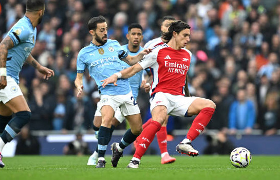 | Пятый тур английского чемпионата подарил нам много ярких и результативных матчей. В центральном поединке тура сошлись «Манчестер Сити» и «Арсенал». «Горожане» первыми забили благодаря Холанну, но еще до перерыва гости не только отыгрались, но и вышли вперед. Правда, в самой концовке первого тайма «канониров» вдесятером оставил Леандро Троссар. После перерыва команда Гвардиолы осадила ворота Давида Райи и сумела спастись лишь в компенсированное время. Голом отметился защитник Джон Стоунз. Как итог, яркая ничья со счетом 2:2. Три безответных мяча в ворота «Борнмута» отправил «Ливерпуль». Дублем отметился Луис Диас. С таким же счетом лондонский «Челси» расправился в дерби с «Вест Хэмом». В составе «аристократов» два гола и ассист в свой актив записал Николас Джексон. Очередную осечку допустил «Манчестер Юнайтед», который так и не сумел взломать оборону «Кристал Пэлас». Встреча завершилась нулевой ничьей. Волевых побед добились «Тоттенхэм» и «Астон Вилла», которые переиграли своих соперников со счетом 3:1. «Шпоры» справились с «Брентфордом», а подопечные Унаи Эмери оказались сильнее «Вулверхэмптона». Первое поражение в этом сезоне потерпел «Ньюкасл». «Сороки» в гостях проиграли лондонскому «Фулхэму». Результативный матч выдали «Брайтон» и «Ноттингем Форест». Финальный свисток зафиксировал ничью со счетом 2:2. Первые очки в сезоне набрал «Эвертон». «Ириски» разошлись миром с «Лестером» со счетом 1:1. В самой концовке спаслись от поражения в матче с «Саутгемптоном» футболисты «Ипсвича». И этот поединок завершился миром со счетом 1:1. ![]() Фото - Getty Images. В центральном поединке тура сошлись «Манчестер Сити» и лондонский «Арсенал». Команды с первых же секунд продемонстрировали свой боевой настрой. А уже на девятой минуте счет был открыт. После роскошной передачи от Савиньо свой очередной мяч в этом сезоне забил Эрлинг Холанн, который четко пробил в ближний нижний угол. Через пять минут мог забивать Гюндоган, но опытный немец со штрафного зарядил в штангу. «Канониры» не особо расстроились и сумели довольно оперативно отыграться. На 22-й минуте после передачи от Мартинелли мяч в дальний угол закрутил Риккардо Калафьори. Итальянский защитник забил свой первый гол в АПЛ. Ближе к перерыву «Арсенал» и вовсе вышел вперед. После подачи с углового от Сака набежавший из глубины Габриэл головой с нескольких метров вколотил мяч в сетку. Перед самым перерывом полузащитник «Арсенала» Леандро Троссар выбил мяч в сторону после фола на Силве, за что получил желтую карточку, которая стала для бельгийца второй. Оставил Троссар лондонцев в меньшинстве. Всю вторую половину матча подопечные Гвардиолы искали брешь в обороне «Арсенала», но хозяевам отчаянно не везло. Казалось, что «канониры» смогут выстоять, но на восьмой компенсированной минуте действующие чемпионы Англии все же отыгрались. Спасителем для «Манчестер Сити» стал Джон Стоунз, который с близкой дистанции вонзил сферу под перекладину. Итоговый счет этого противостояния — 2:2. «Горожане» впервые в сезоне потеряли очки, но остались на единоличном первом месте в таблице. ![]() Фото - Getty Images Без голов на «Селхертс Парке» обошлись «Кристал Пэлас» и «Манчестер Юнайтед», хотя моментов у обеих команд было много. Уже на десятой минуте мог забивать вышедший на поле с первых минут Алехандро Гарначо. Т