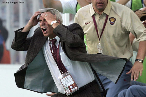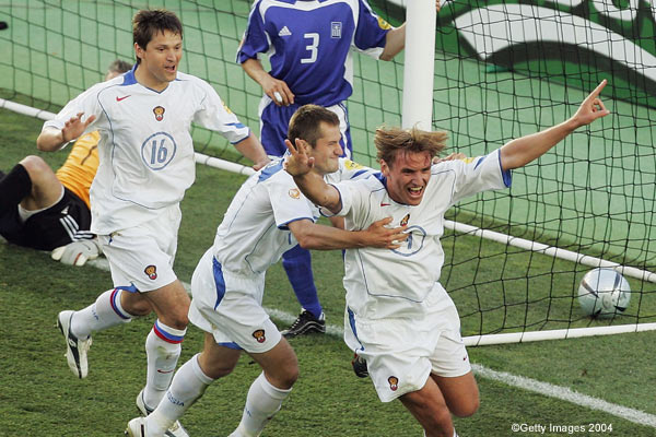 Сборная России завершила свой последний матч на ЕВРО-2004 заслуженной победой над Грецией со счетом 2:1. Напомним, что после поражений от Испании и Португалии россияне потеряли все шансы на выход в следующую стадию турнира. Уже к 17-й минуте команда Георгия Ярцева благодаря голам Кириченко и Булыкина вела в счете 2:0, но на исходе первого тайма греки усилиями Вризаса сократила разницу в счете до минимума. Этот результат не позволил сборной России подняться выше последнего места в группе. А вот сборная Греции, не смотря на поражение, вышла в четвертьфинал чемпионата Европы. Первое место в группе А неожиданно заняла Португалия, обыгравшая Испанию со счетом 1:0. На втором месте осталась Греция, опередившая неудачливых испанцев лишь по количеству забитых голов. А ведь расклад в группе мог быть совсем иным, если бы нападающий сборной России Дмитрий Кириченко реализовал стопроцентный голевой момент на 87-й минуте...