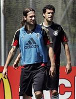 Фрингс и Баллак на тренировкеНачиная с четвертьфиналов, матчи чемпионата доверены только двум стадионам. Один в Швейцарии («Санкт-Якоб Парк»), другой в Австрии («Эрнст-Хаппель»). По этому факту ощущается, что мы уже, плотно насытившись групповыми матчами, откинулись на спинку кресла и ждем десерт. После сегодняшних завершающих встреч в группе D за спиной останется 24 матча из 31. Осталось 7 игр. В этой магической цифре заключено все самое интересное. То, собственно, ради чего чемпионат и начинался. Начинается сие действо в Базеле. Уже на первой стадии плэй-офф встречаются полноправные претенденты на титул. И португальцы, и немцы, как и предполагалось, вышли из своих квартетов. Но сделали это совершенно по-разному. Гранатово-изумрудные с уверенностью преодолели два первых барьера и снисходительно обошли второй (проиграв, но не расстроившись). На этом пути пиренейцы не наткнулись ни на одну чем-то выделяющуюся сборную. Намекаем на то, что гранды дружину Сколари в деле пока еще не проверяли. И весь вопрос, какова будет проверка? Справятся? Или дрогнут? Немцы, натянув маску уверенности в польском матче, резко сдали. И две оставшиеся встречи провели на нервах. Чем породили вокруг себя большое количество злободневных вопросов. Для обоих соперников это настоящий барьер, преодолей который, становишься одной ногой в финал. Кто-то скажет, что португальцы ведь ярче, Роналду у них мастер на все руки, из-под чуткого контроля Деку не уйдет ни одна передача. И это правильно. Но сборная Германии, стиснув зубы, за счет железной дисциплины может раскусить самого сложного соперника. Нас ожидает столкновение полюсов международного футбола. Горячие европейские бразильцы со свойственным им куражом, играющие в карнавальный футбол. И немцы. Железные, непоколебимые немцы…