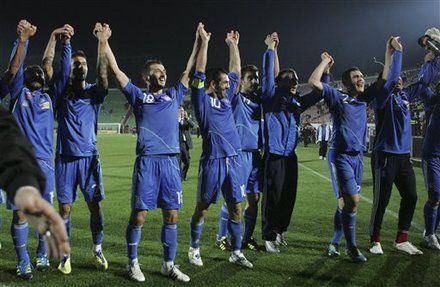 Заставили, ох, заставили понервничать своего тренера и поклонников чемпионы Европы-2004. Греков устраивала даже ничья, чтобы с первого места выйти из группы F, однако в матче против грузин сразу все пошло наперекосяк. Уже на 19-й минуте встречи Таргамадзе сделал обыкновенную подачу в штрафную, но мяч спланировал прямо в ворота, никого не задев. Такое положение дел эллинов не устраивало, ведь хорваты явно сильнее латышей и могли забить в любую минуту. Гости начали брать инициативу в свои руки и устраивать набеги на ворота Ревишвили еще в первом тайме, что вылилось в предупреждения Канкаве и Мчедлидзе. В остальном, на поле блистали вратари. Ревишвили отбил выстрел Кацураниса, а Цорвас спас ворота после удара Таргамадзе. Фернанду Сантуш бросил в бой резервы: на 56-й минуте на поле вышел Фотакис. Еще через 15 минут грузины остались в меньшинстве, потому что Таргамадзе получил травму, а все замены были использованы. За это Тимур Кецбая и поплатился. На 79-й минуте вышедший Фотакис сравнивает счет при помощи дальнего удара и рикошета от защитников, а через 6 минут Харистеас закрепил счет и свое возвращение в сборную точным выстрелом. Не без лишних нервов, но греки все же выходят на Евро напрямую.