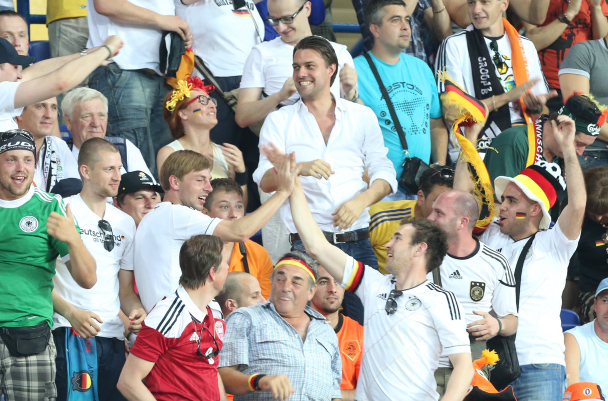 Немецкие болельщики довольны результатом, их любимцы сохранили победный счёт.