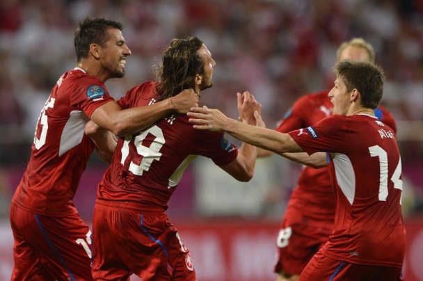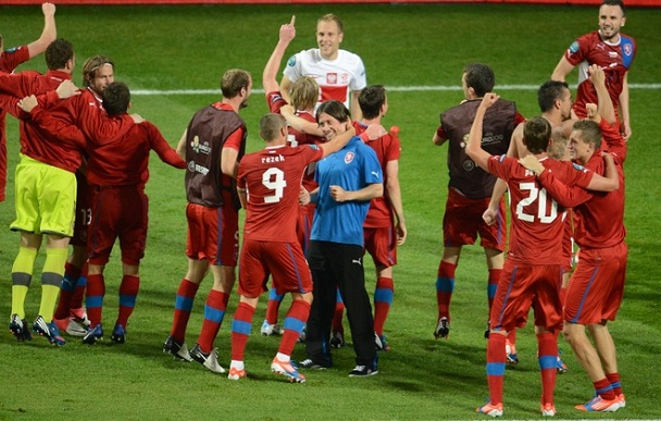 Чехия празднует выход в четвертьфинал.