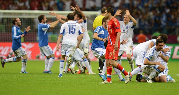 Греки празднуют выход в четвертьфинал.