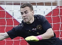 Вратари: Игорь Акинфеев (ЦСКА), Юрий Лодыгин («Зенит»), Маринато Гилерме («Локомотив»). Освежим в памяти состав национальной сборной. Подробно рассуждать о том, почему одних игроков взяли, а других нет мы не будем, ибо по этому поводу на ФНК уже был написан материал, плюс наши читатели сами хорошо осведомлены о том, кто в ростере имеется, а кто по тем или иным причинам проехал мимо Франции. Во вратарской бригаде есть четкое понимание того, кто будет на Евро «первым номером» - Игорь Акинфеев, и тут иных вариантов быть не может. Насчет его сменщиков мнения разошлись. Все-таки там выбор голкиперов достойного уровня у Леонида Слуцкого был приличный. Кто-то считает, что Рыжиков или Крицюк и, особенно, Джанаев, своей игрой за клуб больше заслужили место в сборной, нежели чем неровно отыгравший сезон в «Зените» Лодыгин. С другой стороны, Юрий обладает огромным опытом игры в «больших матчах». Да, и при Слуцком он всегда в сборную вызывался. Поэтому, логика в наличии Лодыгина в составе, безусловно, есть. Более того, именно его тренерский штаб наверняка рассматривает в качестве первого сменщика Акинфеева на случай каких-то форс-мажорных обстоятельств.