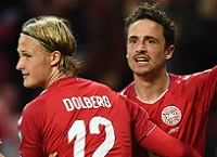 Серьезно настроились хозяева поля на этот поединок. Дилейни сразу увидел, как Поульсен вперед рвется, отличную передачу на партнера выдал, но Какабадзе мяч отобрал, не позволил чему-то опасному произойти. Но потом датчанам удалось устрашить своего конкурента. Эриксен оформил отменный пас в чужую штрафную на Дольберга, который вышел на рандеву с голкипером и вот уже, казалось, неминуем гол, однако Григалава в падении выбил у него мяч из-под ног, так что угроза была нейтрализована. Далее Канкава прорвался по правому флангу, на скорости ушел от Стрюгера-Ларсена, навесил в центр штрафной на Лобжанидзе, однако переиграл его в воздухе Кьер, который от греха подальше «снаряд» и выбил. Дилейни все чаще оказывался на ударной позиции, постоянно подстраивался под передачи от партнеров, заводил игру на передовой, иными словами. Дольберг, в свою очередь, занимался перехватами, не давал вообще толком сосредоточиться гостям. Гвилия потом два угловых подряд оформлял, но ничем они не запомнились. Тогда как корнер от скандинавов получился очень даже запоминающимся. В плохом смысл для приезжих и в хорошем для болельщиков, собравшихся на трибунах. Выполнил подачу в центр вратарской Эриксен, Дольберг опередил Григалаву и просто расстрелял ворота кипера грузин – 1:0 в пользу хозяев поля! Хейбьерг очень неплохо подключался на передовой у футболистов принимающей стороны, а вот гостям как-то и отвечать было нечем. Не могли они нормально собраться с мыслями, взять, да атаковать.