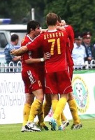 В Белгороде местный «Салют» встречался с «Балтикой». Белгородцы по-прежнему не могут определиться с кандидатурой главного тренера. По словам президента клуба Юрия Клепикова, на вакантную должность претендуют три специалиста – Сергей Подпалый, Сергей Юран и Федор Щербаченко. Пока же «Салютом» руководит и.о главного тренера Максим Васильев. Перед отчетным поединком хозяева внесли в заявку полузащитника Дениса Ткачука. Стан калининградцев, в свою очередь, пополнили Александр Минченков и Артак Алексанян. Стоит отметить, что перед матчем с «Балтикой» состоялось открытие реконструированной южной трибуны стадиона «Салют». Команды начали встречу без раскачки, обменявшись неиспользованными голевыми моментами в дебюте. Сначала гостей простил Яковлев, не сумевший поразить ворота Колинько ударом с близкого расстояния, а в ответ Дмитрий Сысуев пробил чуть выше перекладины с выгодной позиции. После этого игра в течение долго времени была равной, однако на исходе получаса белгородцы открыли счет! Ахметович откликнулся на подачу в исполнении Михеева и головой поразил ворота противника – 1:0. Более того, спустя всего две минуты подопечные Максима Васильева получили право на пенальти, который удачно реализовал Мирошниченко – 2:0. Пропустив дважды кряду, балтийцы не упали духом, а, напротив, активизировались. Еще до перерыва команда Евгения Перевертайло запорола несколько голевых моментов. Особенно обидным для гостей получился промах Вотинова, который не сумел поразить уже пустые ворота соперника. Во втором тайме игра продолжалась в том же ключе. «Балтика» пыталась отыграться, но «Салют» здорово оборонялся, а также проводил резкие ответные контратаки. У гостей крайне редко получалось пройти оборонительные порядки противника, а если им это и удавалось, то надежно в воротах действовал Криворучко. Однако под занавес основного времени калининградцы один мяч все-таки отквитали усилиями Сальникова – 2:1. На большее у команды Евгения Перевертайло просто-напросто не хватило времени. Эта победа позволила клубу из Белгорода подняться на восьмую строчку в турнирной таблице. «Балтика» же откатилась на десятую позицию в табели о рангах.