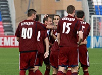 Неожиданно проигравшая в первом туре «Уфе» владикавказская «Алания» в Пятигорске принимала новичка ФНЛ «Ангушт», который начал сезон с домашней ничьей в игре против «Нефтехимика». Этот матч проходил в Пятигорске, так как стадион «Спартак» во Владикавказе получил дисквалификацию на одну игру после памятного поединка между «Аланией» и московским «Динамо» в рамках Премьер-Лиги, в котором случилась потасовка с участием Александра Кокорина, Балажа Джуджака и других. Тем не менее, в Пятигорске команда Владимира Газзаева без поддержки своих болельщиков не осталась. «Барсы» с самых первых минут встречи вполне ожидаемо прибрали инициативу к своим рукам и принялись организовывать массированные атаки на ворота «Ангушта». Острые ситуации возле владений Хамхоева возникали достаточно часто, в то время как его визави Дмитрий Хомич крайне редко вступал в игру. «Алания» смогла извлечь дивиденды из своего ощутимого территориального перевеса на 35-й минуте. Великолепная трехходовка Габулов-Гогичаев-Хадарцев закончилась точным ударом последнего – 1:0. После этого ситуация на поле не изменилась. Гости контратаковали крайне робко, а владикавказцы полностью контролировали ситуацию на поле, на классе доводя дело до заслуженной победы. Более того, на 72-й минуте команда Бориса Стукалова осталась вдесятером из-за удаления Албакова. Команда Владимира Газзаева реабилитировалась за неудачное выступление в стартовом туре, а клуб из Назрани потерпел первое поражение в сезоне.