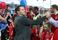 Но начнем мы наш обзор не с игры в Хабаровске, которая была первой по хронологии в тридцать седьмом туре, а с поединка в Дзержинске, где «Химик» принимал «Шинник». Эта игра должна была состояться еще в тридцать втором туре, однако по договоренности между клубами данную встречу перенесли на 11 мая. Команда Вадима Хафизова этим поединком заканчивала нынешний чемпионат. В принципе, для клуба из Нижегородской области дебютный сезон в ФНЛ сложился успешно. Главную задачу на сезон команда выполнила – сохранила прописку во втором эшелоне российской футбольной иерархии. Что касается ярославцев, то для них отчетная встреча большого турнирного значения также не имела. Шансы на попадание в зону переходных встреч подопечные Александра Побегалова потеряли, и теперь они просто-напросто доигрывают сезон. В первом тайме шла примерно равная игра. Небольшим игровым перевесом владели гости. Атаки в их исполнении были более острыми, и ближе к концу первой сорокапятиминутки «Шинник» вышел вперед. Малоян набрал великолепную скорость по правому флангу, вошел в чужую штрафную площадь, но не стал бить сам, а сделал передачу бежавшему параллельным курсом Деобальду, который спокойно поразил пустые ворота противника – 0:1. После перерыва ситуация на поле толком не поменялась. Ярославцы продолжали держать игру под своим контролем, а у хозяев впереди практически ничего не клеилось. И на 57-й минуте подопечные Александра Побегалова удвоили свое преимущество. Низамутдинов из пределов чужой штрафной площади пробил в перекладину ворот Загребина, а Деобальд первым оказался на добивании и поразил цель – 0:2. Оформив комфортное преимущество в счете, футболисты «Шинника» не собирались успокаиваться и играть на удержание счета. Вскоре Шадин мог довести дело до разгрома, но его удар с близкого расстояния цели не достиг. Правда, и у хозяев были шансы забить «гол престижа», однако они ими не воспользовались. На минорной ноте закончил чемпионат «Химик». Правда, болельщики и руководство клуба все равно должны быть довольны выступлением команды в дебютном сезоне в ФНЛ. Подопечные Вадима Хафизова уже совершенно точно займут шестнадцатую позицию в турнирной таблице. «Шинник», в свою очередь, пока идет шестым.