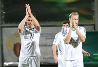 В отчетном туре калининградская «Балтика» потерпела первое поражение в чемпионате. Обидчиком команды Хазрета Дышекова стала «Волга». Отчетная встреча получилась весьма яркой и богатой на интересные моменты. Судьбу матча решил один гол, забитый нижегородцами под занавес первого тайма. Воспользовавшись оплошностью Тимофеева в центре поля, подопечные Андрея Талалаева соорудили молниеносную контратаку, увенчавшуюся точным ударом Саталкина. Во второй половине встречи «Балтика», естественно, атаковала значительно больше. Подопечные Хазрета Дышекова совершили немало весьма перспективных подходов к воротам противника, но калининградцев постоянно подводила суета в завершающей стадии. Несколько раз удачно действовал голкипер нижегородцев Нигматуллин. Для «Волги» эта победа стала третьей кряду, и по итогам тура команда Андрея Талалаева взлетела на третью строчку в турнирной таблице, хотя еще недавно она обитала где-то в середине. Вот такая плотная борьба идет в ФНЛ!