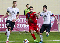 Главным событием двадцать седьмого тура стало столичное дерби между «Спартаком-2» и «Динамо», проходившее на «Открытие Арене» и собравшее на трибунах свыше десяти тысяч зрителей, что является очень солидным показателем для ФНЛ. Статус дерби встреча оправдала сполна. Игра получилась жёсткой, бескомпромиссной, с любопытным сюжетом. В составе команды Дмитрия Гунько в этом матче дебютировал восемнадцатилетний португалец Идриса Самбу, приобретённый в зимнее трансферное окно. Он занял место на левом фланге атаки и провёл на поле около шестидесяти минут. Первый тайм получился не очень зрелищным. Спартаковцы мячом владели побольше, но они действовали скованно и достаточно долго не могли побороть мандраж. Ведь для многих из них это была первая игра в их карьере на таком роскошном стадионе и при столь внушительном стечении зрителей на трибунах. Лидер чемпионата также форсировать события не планировал и занял выжидательную тактику. Зато вторая сорокапятиминутка получилась более яркой и богатой на интересные события. В её дебюте «бело-голубые» открыли счёт. Розыгрыш углового в их исполнении увенчался точным ударом Александра Сапеты. Причём, в данном эпизоде полузащитник «Динамо» ещё и травму умудрился получить, несовместимую с дальнейшим продолжением матча. Оказавшись в роли догоняющей стороны, хозяева бросились отыгрываться. Они несколько раз побеспокоили Шунина плотными ударами в собственном исполнении, однако голкипер гостей в «рамке» действовал надёжно. Сделав упор на атаку, игроки «Спартака-2» стали меньше внимания уделять обороне собственных ворот, за что они едва не поплатились, когда Бечирай однажды убежал на свидание с Песьяковым. К счастью для «красно-белых», черногорец запорол голевой момент, пробив мимо цели. В середине второго тайма Дмитрий Гунько со скамейки бросил в бой ещё одного «джокера» - либерийца Нимели, который тут же имел хорошую возможность отличиться, но не попал в створ с близкого расстояния. А под занавес основного времени второго тайма произошло крайне негативное событие для «Спартака-2». Денис Кутин схлопотал вторую жёлтую карточку и оставил свою команду в меньшинстве. Казалось, что лидер чемпионата, заработав численное превосходство, спокойно доведёт дело до победы, однако молодые спартаковцы не пали духом и уже в компенсированное ко второму тайму время сумели уйти от поражения. Георгий Мелкадзе откликнулся на подачу Дениса Давыдова с угла поля и головой переправил мяч в сетку ворот Шунина. Боевая ничья в столичном дерби!