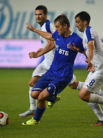 Московское «Динамо» в отчётном туре на своем поле принимало «Балтику». Перед очным противостоянием эти команды в турнирной таблице разделял лишь один балл. «Бело-голубые» имели в своём активе после трех проведенных встреч семь набранных очков, а калининградцы – шесть. Впрочем, подопечные Юрия Калитвинцева считались безоговорочными фаворитами данной баталии. Хозяева с самого начала поединка принялись оказывать мощное давление на ворота Барановского. На регулярной основе москвичи совершали подходы к владениям балтийцев, однако обилия опасных моментов возле ворот гостей мы не видели. Команда Александра Горбачёва, в свою очередь, могла уповать исключительно на редкие контратаки. В одной из них калининградцы получили право на угловой, розыгрыш которого едва не увенчался взятием ворот Шунина. К счастью для «бело-голубых», Зимулька со считанных метров пробил рядом со штангой. Отметим, что Юрию Калитвинцеву пришлось по ходу первого тайма провести вынужденную замену. Получившего травму Морозова в спешном порядке сменил Антон Терехов. Концовка сорокапятиминутки получилась богатой на интересные события. На 38-й минуте динамовцы всё-таки сумели конвертировать своё ощутимое игровое преимущество в забитый мяч. Хозяева получили право на штрафной, который прекрасно исполнил Панченко. Буквально тут же у столичного клуба появился великолепнейший шанс удвоить собственный перевес в счёте и, по сути, снять все вопросы относительно исхода данного противостояния. Зимулька сфолил на Бечирае в пределах собственной штрафной площади, и главный арбитр Сергей Куликов без колебаний указал на «точку». Одиннадцатиметровый взялся исполнить сам пострадавший, но переиграть Барановского черногорец не сумел. За упущенный голевой момент «бело-голубые» были наказаны за несколько секунд до перерыва. Почивалин откликнулся на мягкую подачу Елисеева с правого фланга и ударом со «второго этажа» расстрелял владения Шунина. Вот таким неожиданным образом завершилась первая сорокапятиминутка. Вторая половина встречи прошла под аккомпанемент проливного дождя, и, исходя из данных погодных условий, хозяева заметно упростили свою игру, делая больший акцент на верховые забросы в направлении нападающих. Для усиления атакующей мощи Юрий Калитвинцев на исходе часа игрового времени бросил в бой Луценко вместо Сапеты. В течение долгого времени футболисты «Динамо» никак не могли забить столь желанный второй гол. На 65-й минуте Бечирай каким-то непостижимым образом с двух метров умудрился пробить в Барановского. Игроки «Балтики» об ответных контрнаступлениях даже не помышляли и занимались исключительно разрушением выпадов неприятеля. Ближе к концу основного времени матча натиск со стороны столичного клуба достиг своего апогея, и хозяевам удалось-таки вырвать победу. После навеса с угла поля мяч отскочил к Панченко, и тот плотным ударом из пределов штрафной площади поразил ворота Барановского. Оформив дубль, Кирилл с пятью забитыми мячами в четырёх проведенных встречах является лидером списка лучших бомбардиров сезона. На этом уровне форвард «Динамо» выглядит футболистом с другой планеты. У команды Юрия Калитвинцева есть немало проблем в организации игры, но благодаря наличию Панченко в своём составе, «бело-голубые» добиваются положительных результа