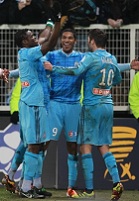 Действующий чемпион страны «Марсель» под руководством Дидье Дешама продолжает набирать обороты. На этот раз перед провансальцами не устояли футболисты «Сошо». Впрочем, первый тайм прошёл в абсолютно равной борьбе, а самое интересное случилось на последних минутах первой сорокапятиминутки. Сначала хозяева вышли вперёд, когда разящий удар нанёс Идейе. Шла 43-я минута, и это можно было назвать голом в раздевалку, если бы не единственная добавленная минута, в которую свой четвёртый гол в сезоне забил Андре-Пьер Жиньяк. Именно этот гол и оказался, что называется в раздевалку. Психологическое преимущество было на стороне «Марселя», который во втором тайме к тому же значительно прибавил в скорости. А когда на исходе получаса игры на поле появился Лоик Реми, гости начали создавать один опасный момент за другим. В итоге Жиньяк на 70-й минуте в пятый раз в нынешнем чемпионате забивал на свой счёт взятие ворот соперника и принёс сложную победу своей команды. Теперь на счету «Марселя» 10 побед, 39 очков и третье место в турнирной таблице.