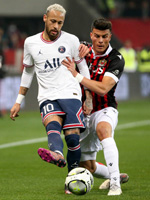 "Пари Сен-Жермен" на стадионе "Альянц Ривьера" играл против "Ниццы". Среди прочих помочь команде Маурисио Почеттино не мог Килиан Мбаппе, который пропускал поединок из-за перебора жёлтых карточек. Наставник "орлят" Кристоф Гальтье в прошлом сезоне выиграл чемпионский титул с "Лиллем" и у него явно есть рецепт противодействия ПСЖ. 55-летний специалист продемонстрировал его и на этот раз. Первый опасный момент возник уже на первой же минуте. Амин Гуири нанёс классный удар по воротам, но Келор Навас спас свою команду. Через пять минут всё тот же Гуири исполнил ещё один великолепный выстрел, однако на этот раз он немного не попал в створ. "Ницца" продолжила атаковать, но на 9-й минуте неудачно исполнила угловой, так что парижане провели толковый контрвыпад, в результате которого Неймар вывел Ди Марию один на один с вратарём соперника – Анхель не сумел переиграть Вальтера Бенитеса в ближнем бою. Удивительно, но после такого яркого начала в первом тайме больше не было ни одного опасного момента. ПСЖ владел небольшим территориальным преимуществом, а "Ницца" отвечала атаками, на острие которых был Каспер Дольберг, но все его удары к опасным моментам не приводили. Во второй половине поединка картина на поле не изменилась. "Ницца" действовала "вторым номером", а у гостей мало что получалось в атаке. Не мог взломать слаженную оборону соперника и Лионель Месси. В общем, Мбаппе сильно не хватало столичной дружине. Лишь на 74-й минуте случился более или менее опасный момент, когда Ди Мария после передачи Неймара из выгодной позиции пробил по воротам, но попал в защитника "Ниццы". Ровно через десять минут Джастин Клюйверт ворвался в штрафную гостей, на дальней штанге совершенно один был его партнёр по атаке, но голландец пожадничал и решил сам завершить эпизод. С его ударом справился Навас. Тут же Клюйверт был заменён. Ну а на 88-й минуте "Ницца" вырвала победу. Вышедший на замену Калвин Стенгс навесил на дальнюю штангу, там Тило Крер упустила свеженького Энди Делора, который вонзил мяч в сетку. Подопечные Кристофа Гальтье победили со счётом 1:0 и набрали 49 очков, у ПСЖ осталось 62 балла.