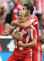 Такой поворот событий нисколько не смутил "Баварию", которая намеревалась сегодня раздавить своего главного конкурента по прошлому сезону. Так стоило Роббену совершить рывок вперед, как команда заработала перспективнейший штрафной, исполняя который сам же пострадавший угодил в стенку. Но после серии рикошетов мяч дошел-таки до Мюллера, который из пределов штрафной без видимых проблем низом добил его в сетку - 2:1. Куражившаяся "Бавария" продолжала лететь вперед. И если Франк Рибери гельзенкирхенцев простил, не сумев поразить дальний угол ворот Мануэля Нойера в атаке, которая была начата вездесущим Мюллером, то уже в середине первого тайма после заброса Роббена в центр штрафной и удара головой Мюллера Марио Гомесу оставалось лишь подставить ногу, чтобы для верности немного подкорректировать полет мяча - 3:1. Но даже после этого проходной двор в защите "Шальке" никуда не исчез, но сейчас хотя бы баварцы уже не наказывали оппонента голом за каждый провал, иначе все могло бы завершиться с двузначным счетом. То Анатолию Тимощуку не хватит самой малости, чтобы замкнуть прострел Гомеса, то Нойер лишь ногами парирует опасный выстрел Мюллера, то Роббен не реализует выход один на один с голкипером, когда уже только защитник сумел вынести мяч из верхнего угла. С течением времени выпады хозяев становились все реже и реже, но все равно ни на минуту не исчезала уверенность в их полном превосходстве над оппонентом.