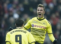 Дортмундская «Боруссия» стала для мюнхенской «Баварии» неудобным соперником. Уже в четвертый раз кряду дортмундцы обыгрывают своего принципиального соперника. Многим казалось, что мюнхенцы сполна отомстят своим оппонентам за прошлогодние неудачи, однако этого снова не произошло. Подпечные Юргена Клоппа полностью выполнили план на игру, и поэтому увозят из Мюнхена заветные три очка. Вообще, встреча получилась не слишком яркой и богатой на голевые ситуации. Особенно это касается первого тайма, когда ни одна из команд не хотела рисковать, и в итоге на двоих был нанесен лишь один удар в створ ворот. Вторая половина, напротив, получилась богатой на события. Постепенно у ворот Мануэля Нойера стало возникать момент за моментом. Гостям не удавалось реализовывать свои возможности. Однако на 65-й минуте «черно-желтые» все-таки смогли открыть счет. Отличился Марио Гетце. Естественно, «Бавария» бросилась отыгрываться. Роман Вайденфеллер несколько раз выручал свою команду в непростых ситуация, а иногда точности не хватало ударом подшефных Хайнкесса. «Шмели» же сыграли по счету и довели дело до победы. 0:1 и интрига в борьбе за чемпионство обострилась до предела.