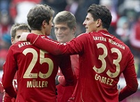 Зато как только часы начали отсчет 6-ой минуты встречи, счет в поединке был открыт. Для этого баварцам достаточно было создать уже свой первый голевой момент, который уверенно завершил Марио Гомес. Кто же еще, если не он? Франк Рибери на левом фланге обманным движением ловко развернул опекуна и выполнил подачу на ближний угол вратарской в направлении форварда. Ну а тому ничего не стоило легким кивком головы отправить снаряд в незащищенный угол - 1:0. Хоть о победе говорить было еще рано, полдела подопечными Юппа Хайнкеса было уже сделано. Оставалось только развить успех, чтобы обезопасить результат от неожиданных неприятностей. Поведя в счете, баварцы продолжили наращивать свое преимущество во времени владения мячом, полностью подавив деморализованных гостей. Лишь ближе к середине первого тайма коллективу Марка Курца удалось приблизиться к хозяйской штрафной, но реальной угрозы владениям Мануэля Нойера это не представляло.
