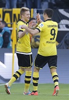 Поединок против "Майнца" практически ничего не давал "Боруссии", однако дортмундские футболисты показали, что ради болельщиков они готовы играть на сто процентов каждый раз. Уже на первой минуте хозяева огорошили "Майнц" быстрым голом. Отличился Марко Ройс. Забитый гол, видимо, привел гостей в уныние. Весь первый тайм они жались к своим воротам. Та же самая картина наблюдалась и во втором тайме. "Майнц" не помышлял об атаках, а "Боруссия" могла забивать еще несколько голов, но отличилась лишь единожды. Роберт Левандовски кружил возле ворот Веткло чуть ли не ежесекундно и своего все же добился. Гол случился ближе к окончанию игры. Эта победа была очень важна для "Боруссии" в психологическом плане. Вскоре подопечным Юргена Клоппа предстоит встретиться с мадридским "Реалом, "и эта "виктория" случилась как нельзя кстати. Если "королевский клуб" встретится с такой агрессивной "Боруссией", то еще неизвестно, кто одержит в этой паре победу. "Боруссия" после этой игры набирает 61 очко и теперь может спокойно готовиться к сражению в Лиге Чемпионов.