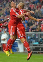 Действительно, претендент номер один на «Золотой мяч» в этом году. Продолжает приятно удивлять француз. Во многом благодаря ему делаются голы, оформляются невероятные передачи, выматываются защитники и обыгрываются оппоненты. Вот и сегодня Рибери явился наряду с Роббеном лидером, который несмотря на смены тренера, стиль игры и прочее остаётся на вершине мюнхенского футбольного Олимпа.