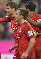 Похоже, показала «Бавария», как будет играть с «Ювентусом» в ответной встрече Лиги чемпионов. Устрашила она «Старую Синьору». «Вердер» оказался «подопытным», разнесли мюнхенцы его в щепки. Рибери хорош, Коман – красавец, Алькантара с каким дублем в итоге, а Гетце по-хорошему зол на всех, видимо, хочет доказать, что может играть на уровне лучших футболистов мира. Непонятно, почему порой такие провальные матчи у подопечных Гвардиолы, сегодня они просто феноменальны были. Может, Рибери так повлиял, да его возвращение? В моральном плане. Кто знает… одно известно точно, страшно «Юве» будет, сложно и очень непросто. Такую «Баварию» остановить разве что «Барселона» (которая, к слову, с «Хетафе» сегодня тоже порезвилась в Примере – 6:0 там счет зафиксирован, веселье в общем, тоже) сможет, да и то это еще спорный вопрос. ФКБ снова в деле, и с этой машиной надо считаться. Так просто они никому победы отдавать не станут. И, чувствуется, 5:0 для них еще далеко не предел. И главное, как изящно играет, ах, одни комплименты, в общем. Гвардиола гений, особенно, когда почти все лучшие его подопечные в строю... Где сейчас «Бавария», а где «Вердер»… небо и земля, конечно. Бременцы внизу турнирной...  |