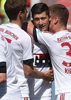 Футболисты принимающей стороны решили, что терять им нечего, да побежали прессинговать «Баварию». Спорно, конечно, довольно дерзкая авантюра, а почему нет, с другой стороны? Лескано вот забеги хорошие такие организовывал, немного Леки выделялся. Однако мюнхенцы долго такого не терпели и отправили в первый запуск по левому краю Алабу, да Рибери в придачу. Потом и во второй забег тоже. Причем сначала вроде опасности особой не было, так, немного нервотрепки для подопечных Хассенхюттля. Но одного из вышеназванных футболистов упускать точно было опасно, в результате Франк просто взял, да и заработал пенальти для приезжих. Левандовски обманул кипера соперника, тот уже в другой угол полетел, Роберт же спокойно выстрелил в противоположный – 1:0 на табло, впереди мюнхенцы, неудивительно, не правда ли? Рибери в штрафной падал, там не особо понятно было, все ли так по правилам, но факт остается фактом, клубу помог, а что уж там зрители думают – это сугубо их личное дело. Метров с 25-ти пару раз решался пробить Мюллер, да только точности ему не хватало. Тогда как потом у гостей получился действительно опасный момент, могли удваивать они свое преимущество. Левандовски отлично отпасовал на Дугласа Коста к чужим владениям. Спокойно разобрался южноамериканец с вратарем, вот уже не хочу – бей… а он умудрился такой момент упустить, мяч у него забрали, а ведь рядом было кому отдать «снаряд», пожадничал… вот и получил, что ничего не получил, если уж можно так выразиться.