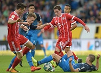 А вскоре "Бавария" получила отличную возможность вернуть интригу в противостояние. Коман проникающей передачей нашёл на левом углу вратарской Левандовски, тот пробил в ближний угол, но Бауманн выручил свою команду. "Хоффенхайм" ответил своим стремительным контрвыпадом, и Полянски отметился хлёстким выстрелом из-за штрафной, после которого мяч пролетел совсем рядом с дальней штангой. "Бавария" в концовке поединка стремилась завершать ударами едва ли не каждую свою атаку. На 73-й минуте дальний выстрел Толиссо пришёлся в защитника. А затем автор дубля Ут получил повреждение в одном из единоборств и под овации трибун покинул поле - героя поединка заменил Охс. Кардо Анчелотти же провёл двойную рокировку, выпустив Рибери и дебютанта Бундеслиги Хамеса вместо Рафиньи и Мюллера, для которого эта игра стала 400-й за "Баварию". Родригес тут же отметился отличной подачей со штрафного - её замкнул Хави Мартинес, пробивший под перекладину. Но Бауманн дотянулся до мяча и со второй попытки укротил сферу. Затем Рибери и Левандовски потревожили Оливера, но их удары опасными не получились, а голкипер "Хоффенхайма" ошибок не допускал. Зиберт добавил к основному времени целых пять минут, но гости уже выглядели обречёнными и не смогли провести даже гол "престижа". А Хуммельс успел ещё и схлопотать "горчичник". Демирбай с заработанного штрафного выстрелил над перекладиной. В итоге "Хоффенхайм" одержал уверенную победу и обошёл "Баварию" в таблице.