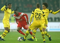 Шестнадцать туров ждали этого конкуренты дортмундской "Боруссии". Наконец беспроигрышная серия "шмелей" прервалась. На зимнюю паузу не удалось уйти непобеждённой команде Фавра, а виной тому скромная "Фортуна". Коллектив из Дюссельдорфа в целом, и Доди Лукебакио в частности, могут считать себя грозой фаворитов. "Фортуна" балансирует на грани зоны вылета, однако регулярно шокирует мастодонтов Бундеслиги. Недавно обожглась "Бавария", на "Альянс Арене" сыгравшая вничью 3:3. Сегодня опростоволосилась "Боруссия", получившая первое поражение в чемпионате. И где? В Дюссельдорфе. "Фортуна" весь матч действовала острее, свежее, продуктивнее, поэтому итоговый счёт не должен удивлять. Автором первого гола стал Доди Лукебакио. Тот же бельгиец, что недавно шокировал "Баварию" в Мюнхене. Форвард на крейсерской скорости обставил пару центральных защитников, далее реализовав выход один на один с Бюрки. Фавр, кстати, на потерпел эту ошибку, после перерыва сняв с игры Аканджи. Не помогло. Жану Циммеру удался шедевральный удар, который не вытащил бы даже Буффон в лучшие годы. И Роман Бюрки капитулировал. В концовке матча феноменальную статистику текущего сезона продлил Пако Алькасер, забивший после выхода на замену. Но то была лишь ложка мёда. "Боруссия" проиграла, позволив тёзке из Менхенгладбаха сократить отставание до шести очков.
