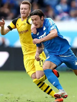 Начали! Первое, что стоит выделить, как Бичакчич получил «снаряд» на левом фланге, побежал вперед. В штрафную влетел, упал. Но судью этим не поймаешь. Видел он, что не было нарушений правил, потому продолжается все, как есть. Солнце светит, хотелось написать птички поют, но тут никаких птичек не слышно, уж больно шумит стадион, поддерживают своих, гонят вперед. Дортмундцы мяч контролируют, но особо в этом компоненте «Хоффенхайм» не отстает. Вот, например, следующий эпизод. Крамарич отлип от опекавшего его футболиста, получил пас на ход. Форвард думал вырваться на рандеву с Бюрки и отправить «снаряд» по назначению, но тут положение «вне игры» лайнсмен зафиксировал. Ройс потом сместился на правый фланг, разобрался с противником, угловой заработал. Там потом, после розыгрыша, мяч отправился на ближнюю штангу, там «деревенские» отвели угрозу. Сумели справиться с напором. Чуть позже Диалло прорвался по центру и выполнил передачу на Шмельцера. Последний обошел оппонента и передачу сделал в сторону Ройса. Полузащитник дортмундцев в штрафную на партнера передачу сделал, в итоге… неточно получилось.