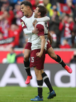 Коутиньо потом получил передачу в центре штрафной от Гнабри и разрядил по центру, в прыжке снова спас свой клуб Луте. А далее Варгас неожиданно для всех оказался один на левом фланге, получил передачу и промчался в свободную зону, только вот мяч был отобран, контратака получилась у ФКБ, Гнабри ворвался в штрафную с правого края, пробил в дальнюю «шестерку», немного не попал в цель. Гнабри затем еще пробивал, но вновь вратарь «фуггеров» выручал, а Гаувелеув на угловой мяч отправил. Корнер опасным не получился, зато опасно было, когда Нидерлехнер на 80-й минуте чуть счет не сравнял, там уже Нойер спас «Баварию». Алькантара получил желтую карточку потом, еще и повреждение при столкновении с Финнбогасоном. Гнабри, после передачи от Коутиньо, снова не забил, мимо цели пробил, а Нидерлехнер уже вроде как сравнял счет, но судьи зафиксировали положение «вне игры». Рефери Штайнхаус добавил пять минут к основному времени поединка. С правого края с Гнабри здорово сыграл Горецка, после чего с ближнего уже расстояния пробил по цели – 2:0! Так матч и закончился. Много раз выручал Луте свой клуб, но от поражения это «Аугсбург» не уберегло.