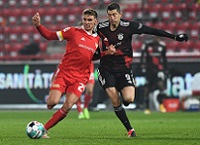 Стартовала вторая половина встречи с кучи угловых, Фридрих с Левандовски столкнулись, да так, что обоим помощь медиков потребовалась, Алаба по левому флангу к атакам подключался, «Бавария» искала всяческие ходы для того, чтобы сравнять счет. Сане заменил подуставшего Мусиалу, а Коман смог убежать на левом фланге от соперников, передал мяч дальше, Левандовски опередил Ленца и в правую «шестерку» пробил – 1:1! Наставник хозяев поля сразу решился на кардинальные рокировки. Грисбек и Бюлтер ушли, а их места заняли Райерсон и Эндо соответственно. Сане очень активно себя вел, как только на поле вышел, Премель нарушил на нем правила, получил за это желтую карточку. А Беккер, мало того, что с передачами у него проблемы были, так еще решил и с рефери поспорить, за что также был наказан. Снова могли выходить вперед берлинцы, когда Тойхерт заработал угловой на левом фланге, Триммель навесил в центр штрафной, опередил всех на месте Фридрих, который головой пробил, но там отлично сыграл Нойер, который спас команду.