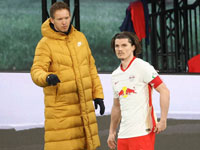 Угловой затем заработали хозяева поля, благодаря стараниям Мукиеле. Нкунку подал, еще один корнер получился. Теперь Кристофер закинул прямиком в штрафную, Конате бил головой, но не попал в ворота. Анхелиньо неплохо порой скидывал мяч партнерам, но то Пош прерывал, то не все получалось у представителя «Лейпцига», пока он не в той форме, что находился до своего периода отсутствия в составе. При одном из последующих забросов «снаряда», в офсайде оказался Мукиеле. Забитцер часто пытался пробить из-за пределов чужой штрафной, но успехом его попытки не увенчались. Вообще, все как-то без особо опасных моментов протекало, порой зрелище на поле стадиона «Ред Булл Арена» как-то не окрыляло, даже усыпляло. Главный рефери Грефе лишь минуту добавил к основному времени первого тайма. С грустными нулями на табло все и закончилось. Ну, как все? То, что было в первой половине встречи, впереди маячила вторая¸ хотелось верить, что более интересная, нежели ее предшественница.