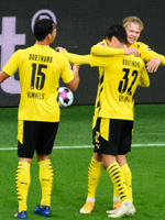 Стартовала вторая 45-минутка, и вот уже удвоили преимущество «шмели». Получилось все очень быстро, даже неожиданно. Заработали угловой хозяева поля, Рейна отметился точной подачей на голову Джана, который под перекладину и разрядил – 2:0! Такой поворот вполне мог отправить конкурента в психологический нокдаун. Далее Витсель чуть выше цели разряжал, а Хуммельс успел сбить Хелера, за что получил «горчичник». Тренер «Фрайбурга» решил, что надо срочно изменить ситуацию. Выпустил он сразу Чона, Шлоттербека, Грифо и Квона вместо Хелера, Гульде, Петерсена и Шаллаи соответственно. Квон сразу получил желтую карточку, тогда как в составе «шмелей» мог отличиться Ройс, но выше перекладины он зарядил. Правда, все шло к тому, что дойдет счет и до разгромного. Так оно и получилось. Рейна и Холанн разобрались сразу с тремя футболистами команды соперника, Джованни вывел Эрлинга на очную ставку с кипером, скандинав обыграл вратаря, оформив дубль – 3:0!